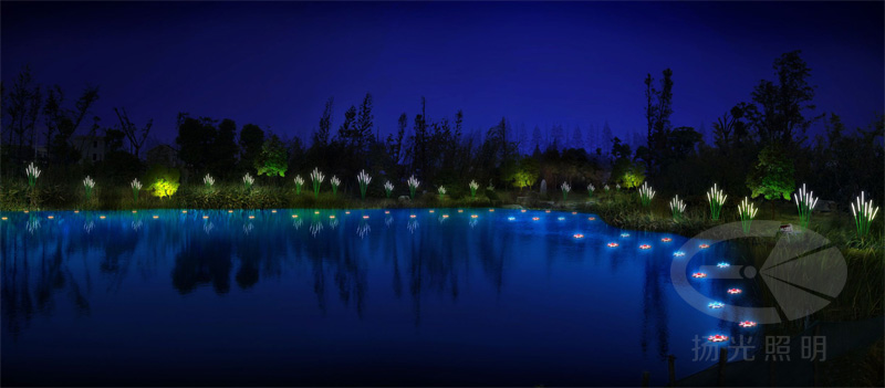 水中燈光倒影(yǐng)的設計(jì)也(yě)應適當參考園林