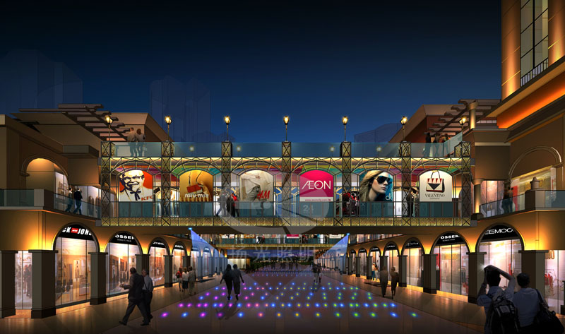 對於營業空間(jiān)來說,設計(jì)一個好的(de)消費環(huán)境是至關重(chóng)要的,一位顧客是否產生消費的欲望,很大程度上受他所處的燈光環境的舒(shū)適度的影響,一個單調的、昏暗的或過亮的燈光環境(jìng),隻能使顧客對(duì)消費環境的注(zhù)意力降(jiàng)低(dī)。因此,一個好的商業照明環境應(yīng)避免這兩個極端,應是環境光、重點光與工作光的有機結合。營造一個活力繁華的商業街景象,吸引消費者的眼球。
