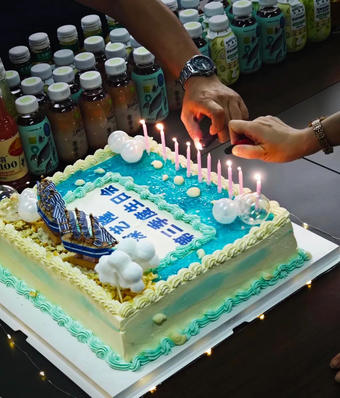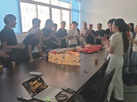 9月17日(rì)下午,會議室(shì)變身歡樂的海洋。藍色工裝與繽紛氣(qì)球相映成趣,冰冷金屬與溫暖笑臉完美融合。特別定製的蛋糕成為全場焦點(diǎn),既彰顯公司特色,又體現公司對每(měi)位員工的用心